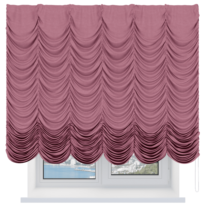 Французская штора вельвет брусничный джем, карниз верёвочный