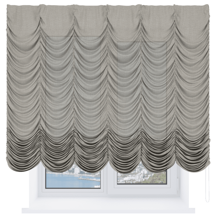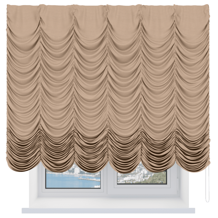 Французская штора лён кашемир коричневый, карниз верёвочный