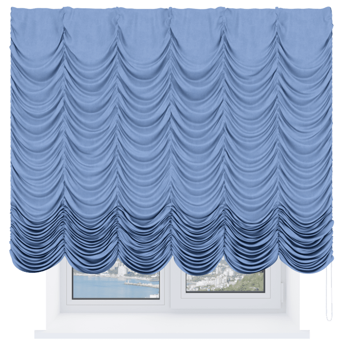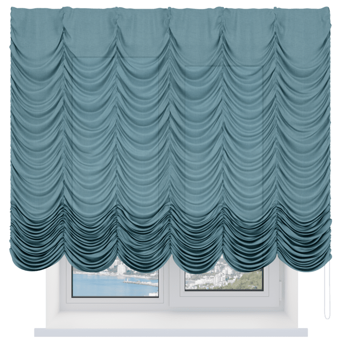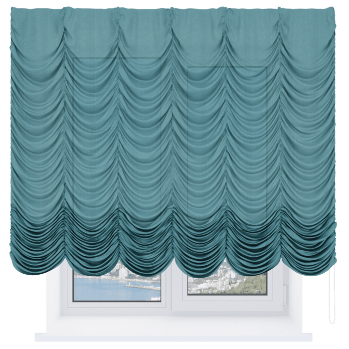 Французская штора вельвет тёмно-салатовый, карниз верёвочный