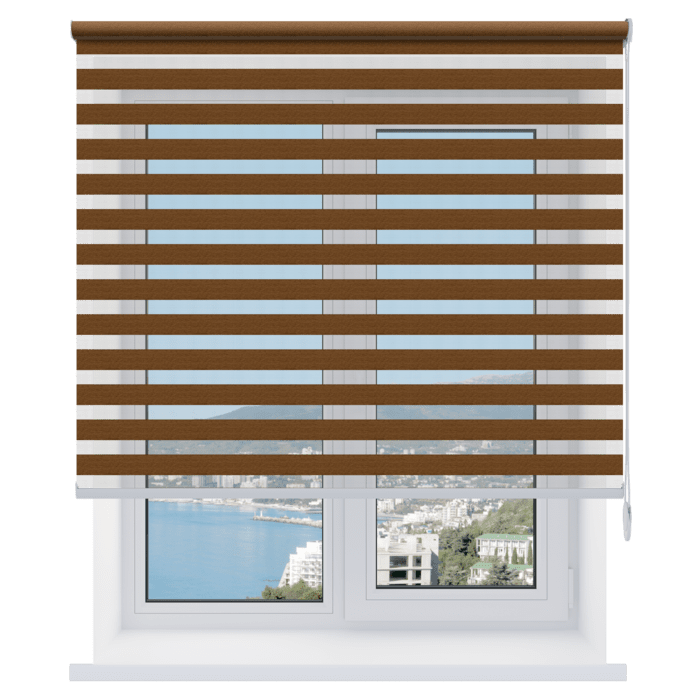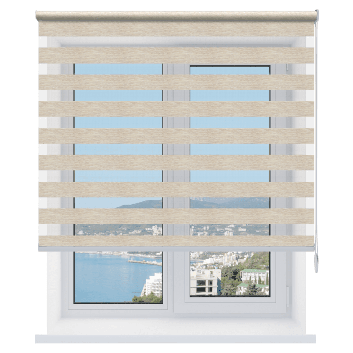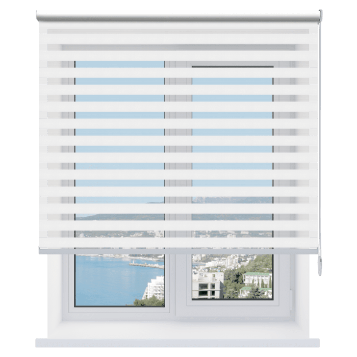 - Универсальность. Открытые рулонные шторы-жалюзи «день-ночь» подходят для любых помещений – от спальни до кухни, и легко сочетаются с другими элементами декора.