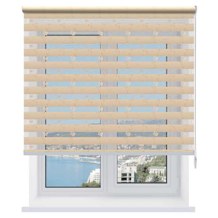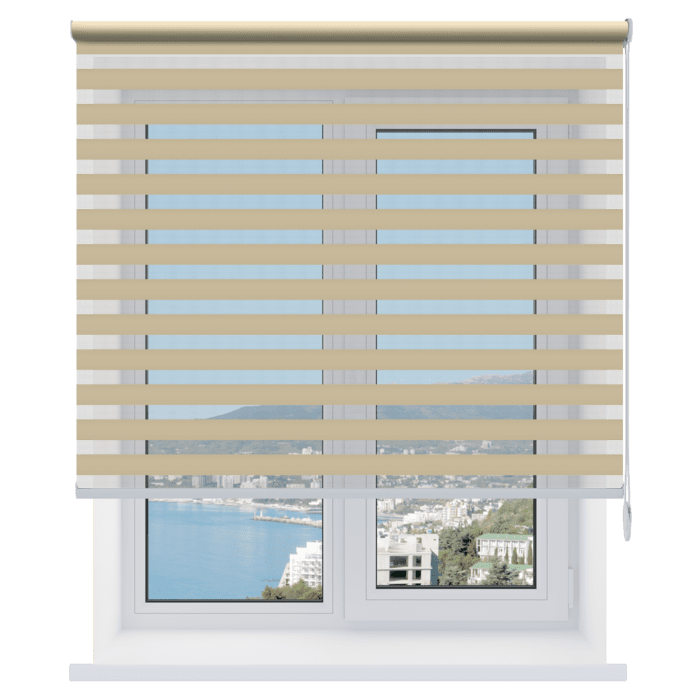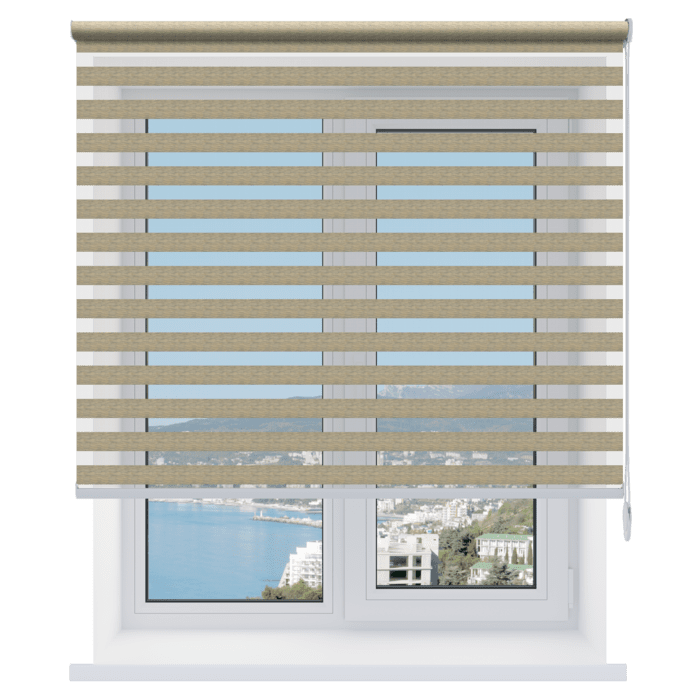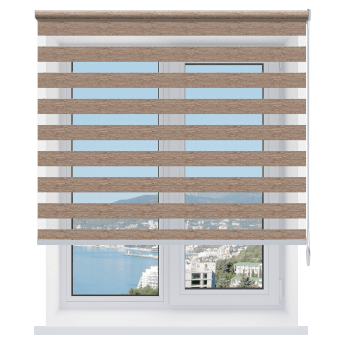 Каждый слой ткани имеет чередующиеся непрозрачные и прозрачные полосы. При смещении полос друг относительно друга можно добиться полного затемнения («ночь», когда непрозрачные полосы совпадают), максимального светопропускания («день», когда совпадают прозрачные полосы) или промежуточных режимов, создавая эффект «зебра».